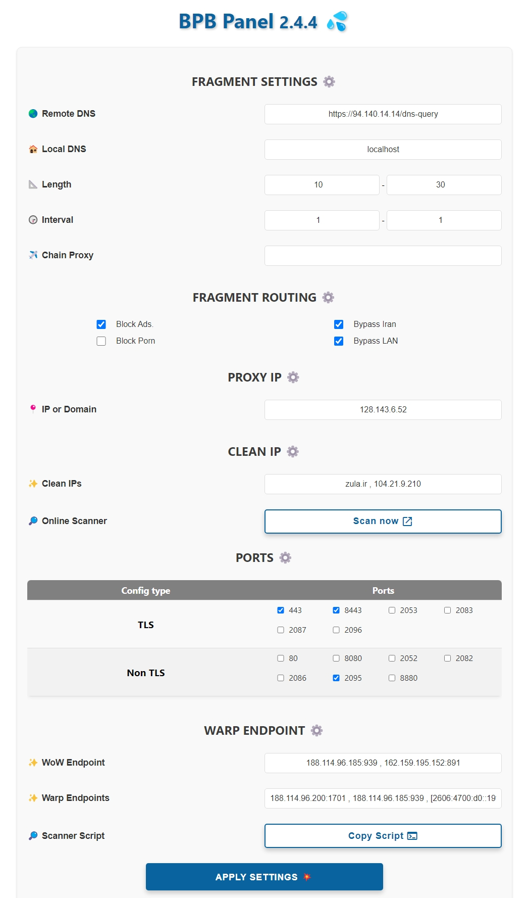 - Custom Cloudflare Clean IP: Ability to use online scanner and setting up clean IP-domains.